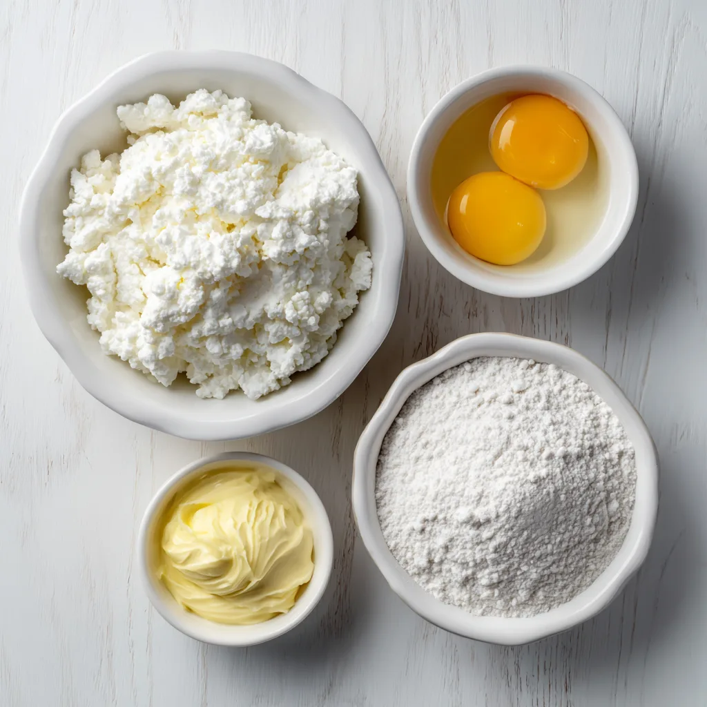 - In a bowl, mix cottage cheese and self-rising flour until a soft dough forms.