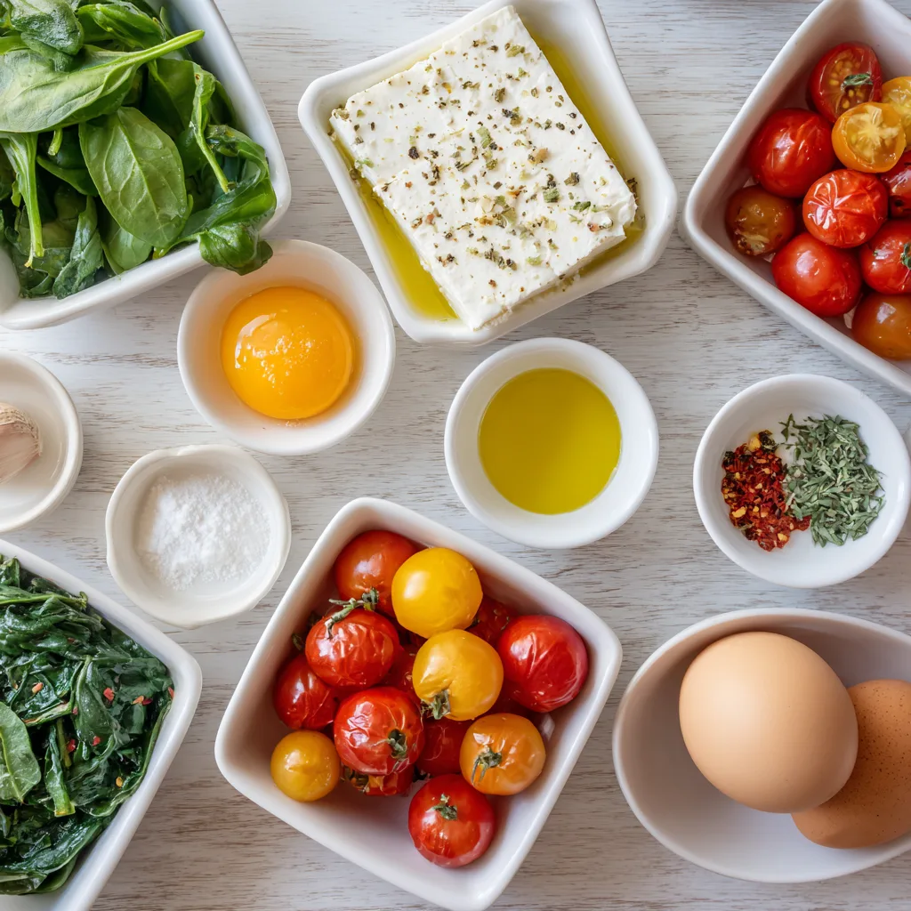 Each ingredient plays a role in creating balance. The feta provides richness, eggs add protein, spinach brings freshness, and tomatoes contribute sweetness and acidity.