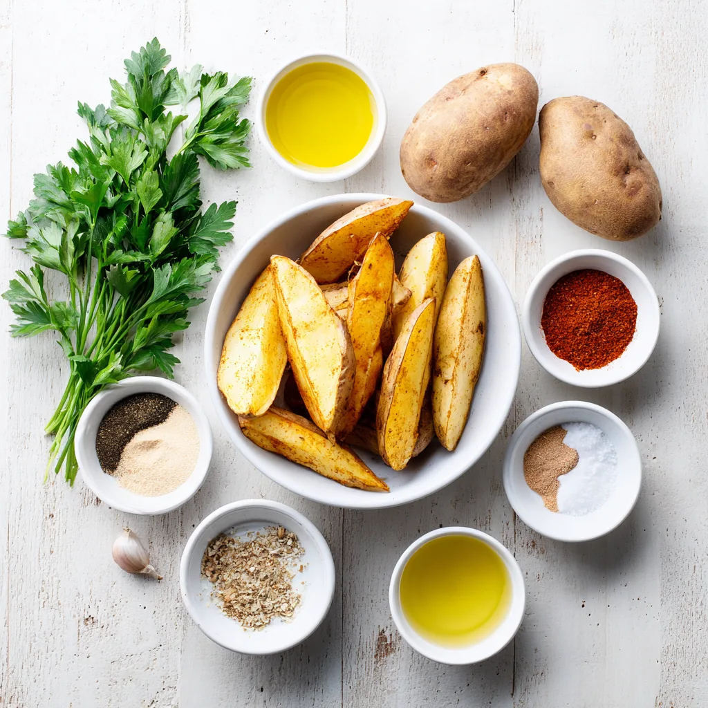 - 4 large russet potatoes, scrubbed and cut into thick wedges