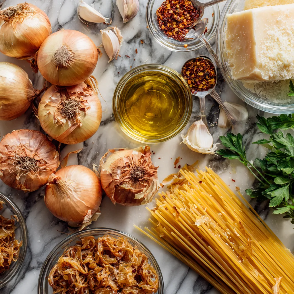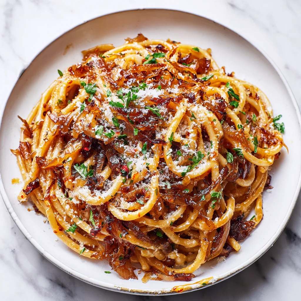 The texture contrast is another highlight—silky pasta strands mingle with soft, jammy onions and get a glossy coating from the chili oil. Each bite delivers layers of flavor: sweet, savory, spicy, and umami all working together to create an unforgettable dining experience. Best of all, most of the cooking time is hands-off, allowing you to prepare other dishes or simply relax while the onions work their magic.