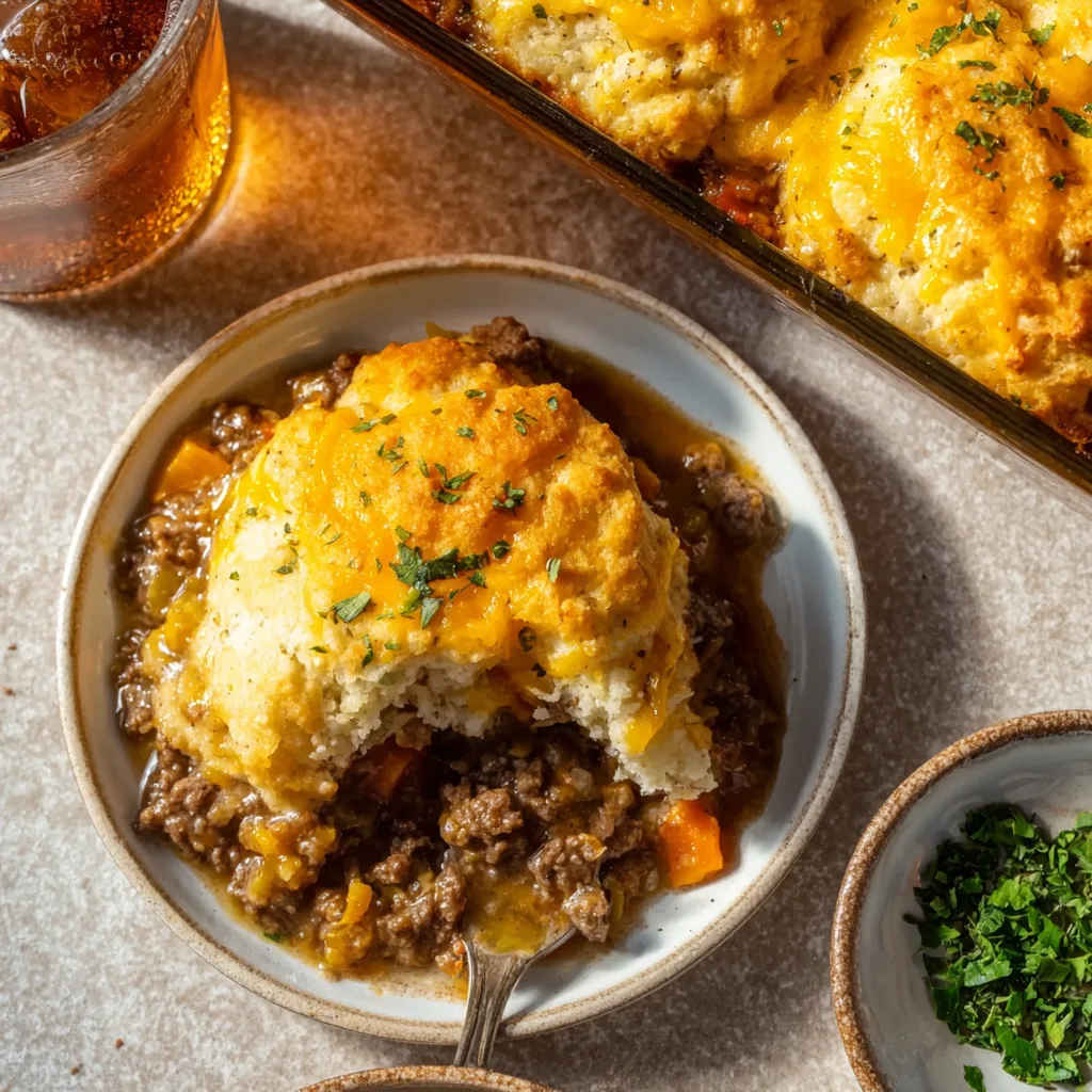 This recipe captures that comforting, family-dinner warmth, but with a restaurant-style twist thanks to the Cheddar Bay biscuit topping. Whether you’re looking for a weeknight winner, a dish for potlucks, or a creative way to use up ground beef, this cobbler-style bake delivers serious flavor and heartiness in every bite.