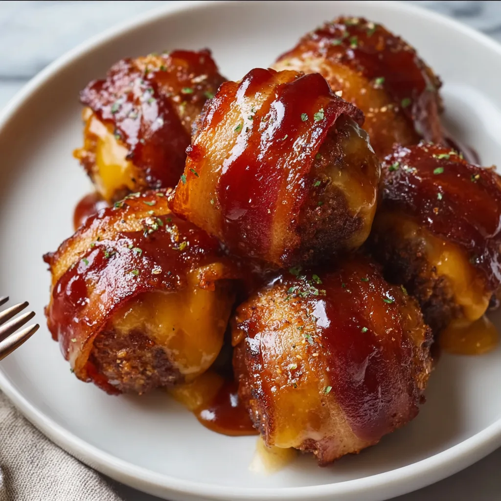 This recipe pairs juicy seasoned ground beef with cubes of sharp cheddar, wraps each ball in strips of bacon, and finishes them with a glossy, sticky coat of smoky BBQ sauce. The bacon crisps, the cheese melts into a gooey center, and the beef becomes a perfectly tender, savory base. Together, they’re a flavor explosion worth every bite.