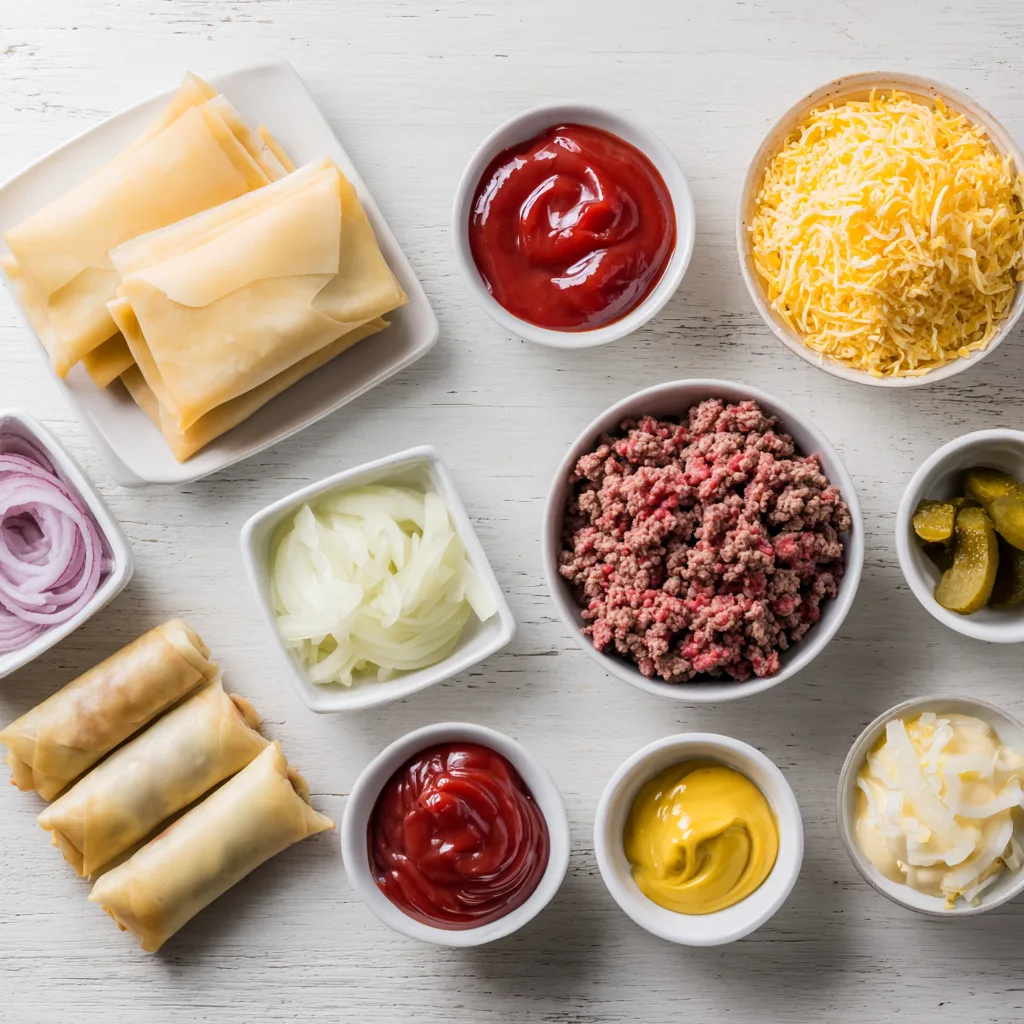 This recipe uses classic cheeseburger flavors wrapped in egg roll wrappers for the perfect crunch.