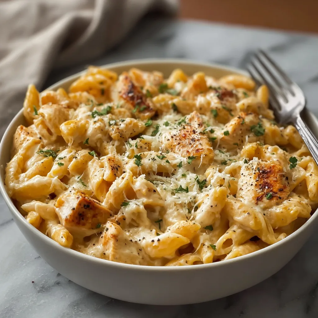 This recipe focuses on balance. The sauce is rich but not heavy, cheesy without being overwhelming, and seasoned to complement the chicken rather than hide it. Every component has a purpose, creating a pasta dish that tastes homemade, comforting, and deeply satisfying.