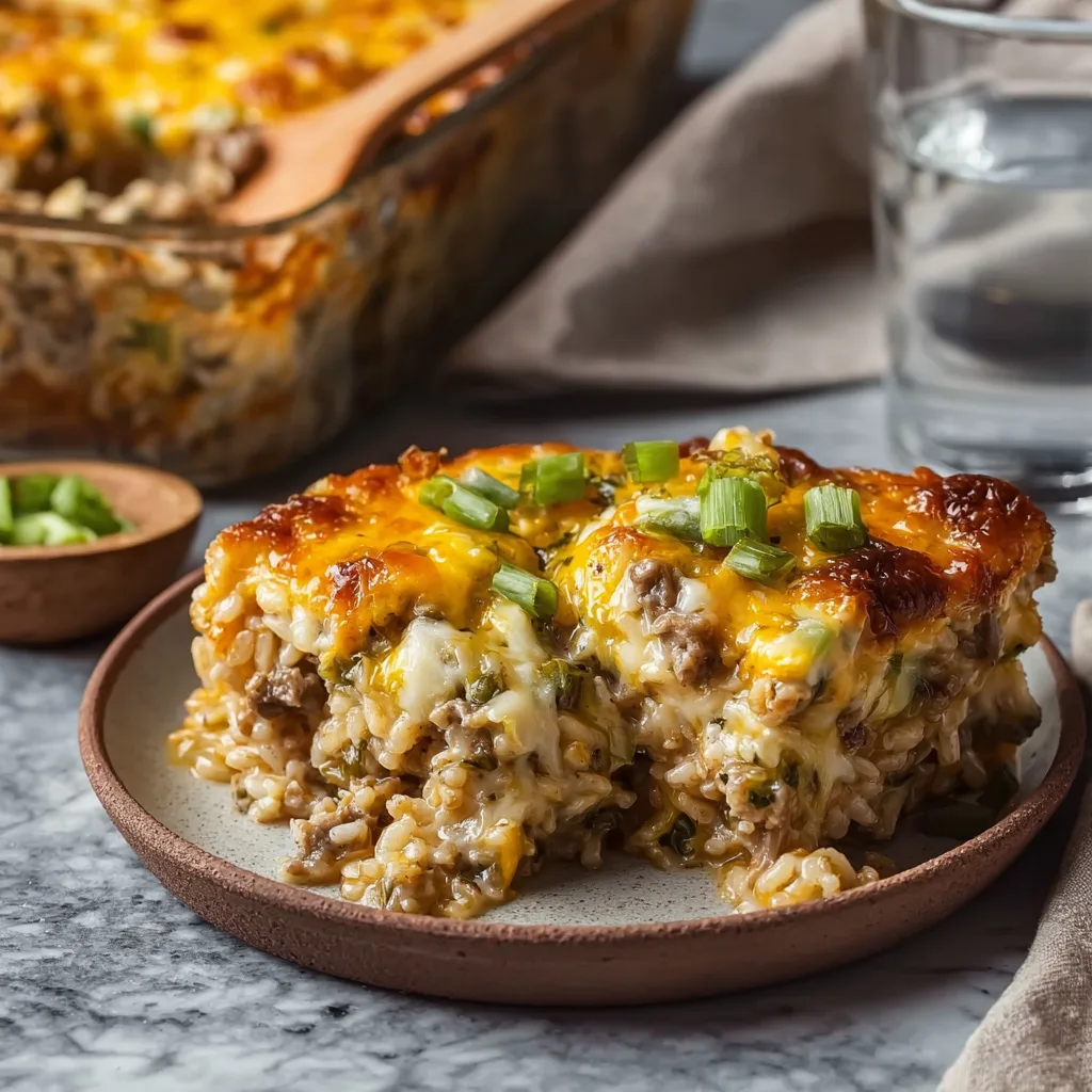 Whether for a weeknight meal, a potluck or simply a satisfying dinner for the family, this casserole brings together simple ingredients in a streamlined way — no fuss, minimal prep, maximum impact. The melty cheese on top adds that golden finish we all love, while the beef and rice form a robust base you can customize as you like.