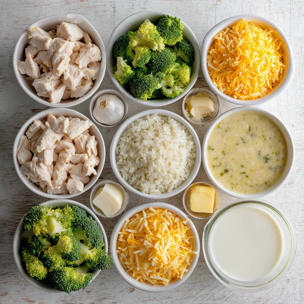 Chicken provides protein, broccoli adds color and nutrients, and rice makes the casserole hearty and satisfying. Everything bakes together into a cohesive, creamy dish that holds its shape while staying soft and comforting.