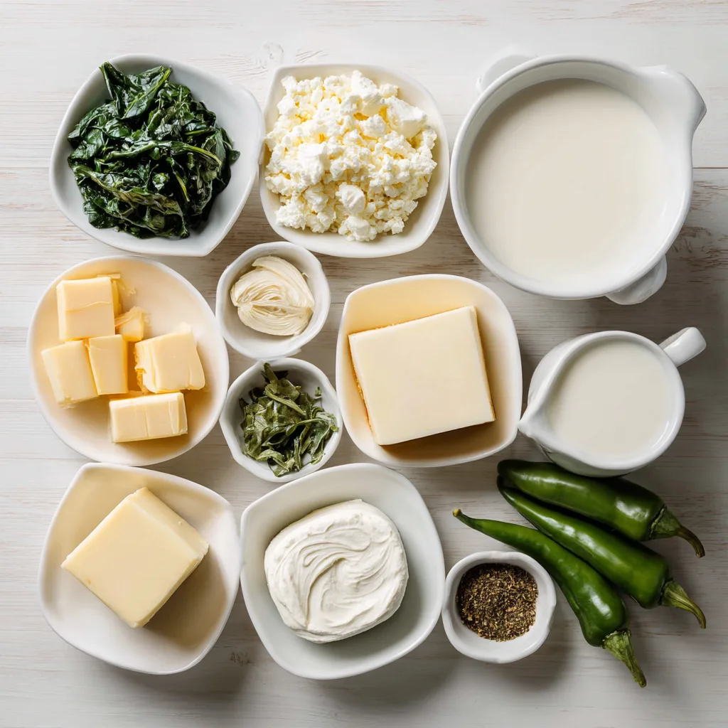 Each ingredient has a purpose: cream cheese adds body, white cheese ensures smooth melting, spinach adds freshness, and green chiles bring warmth.