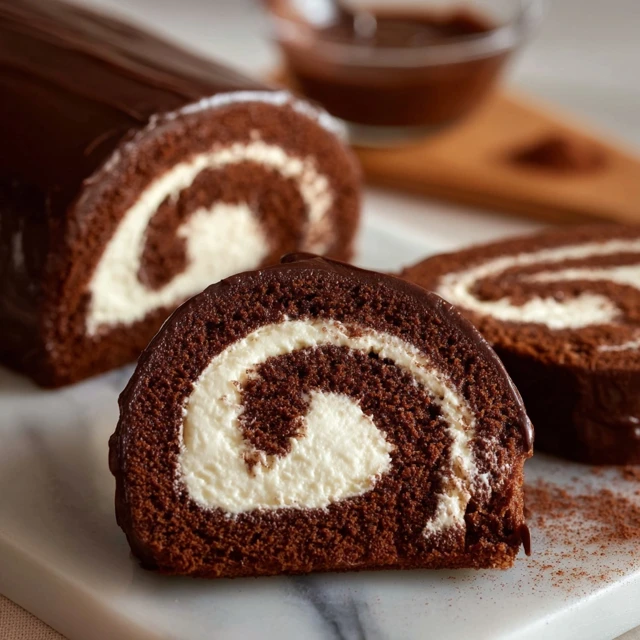This recipe checks all the boxes for a perfect dessert. The sponge cake is light but sturdy, making it easy to roll without tearing. The filling is silky and not overly sweet, which keeps the chocolate flavor from becoming overwhelming. Finally, the ganache adds a rich, glossy finish that makes the cake look straight from a pastry shop.
