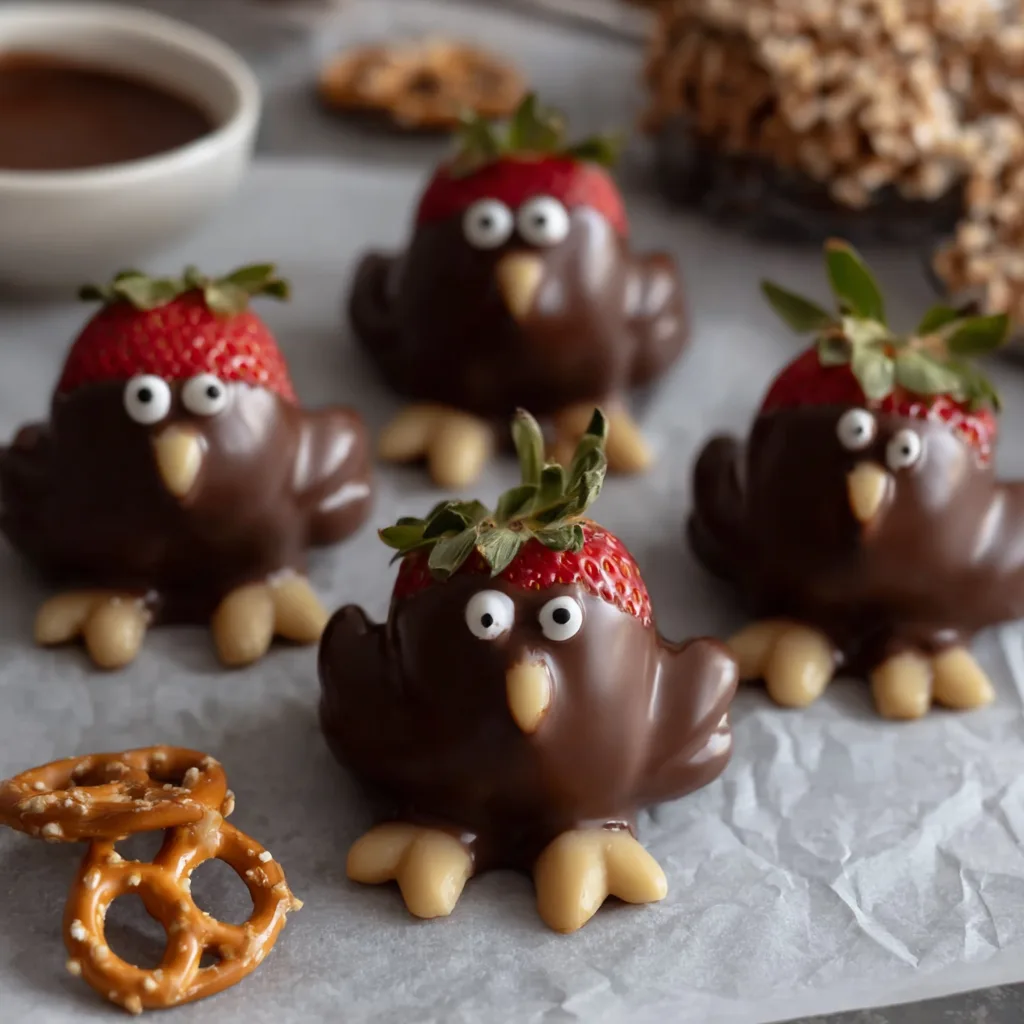 For a fun flavor variation, drizzle melted caramel over the top for a “turkey glaze” effect. It adds a sweet-salty touch that pairs beautifully with the chocolate and strawberries.