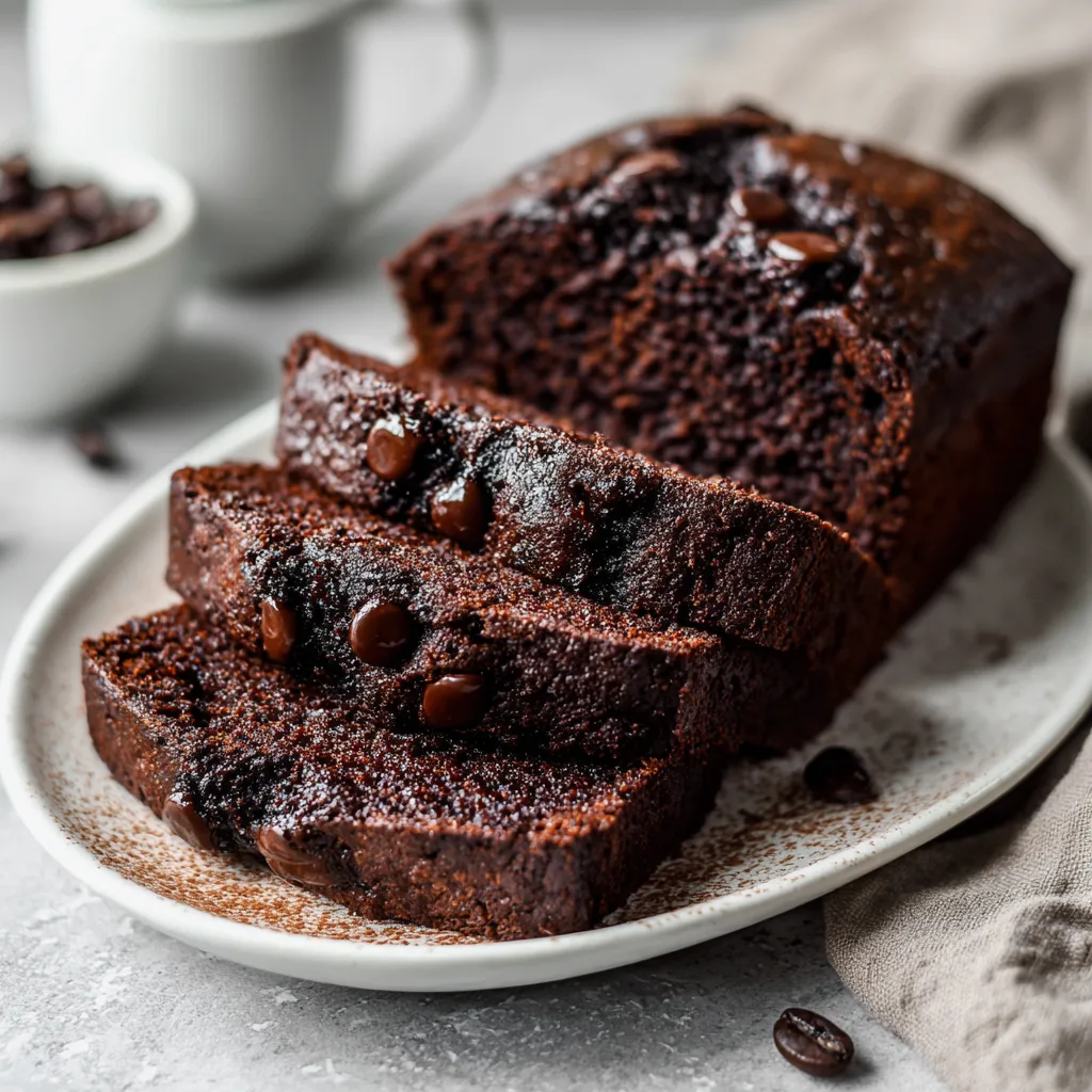 Ultra moist banana bread with rich chocolate flavor and a hint of espresso.