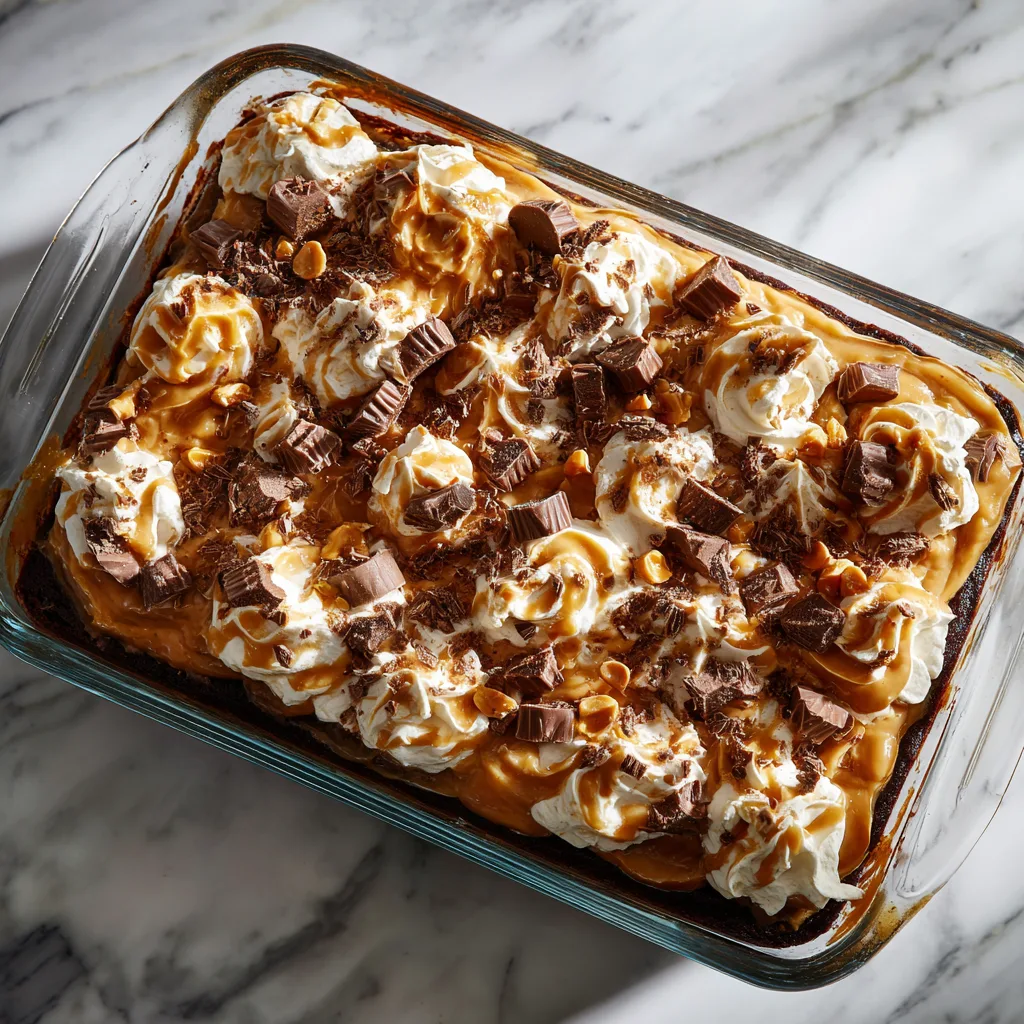 This recipe takes the classic poke cake concept and elevates it with the beloved flavor combination of chocolate and peanut butter. The contrast between the rich, moist chocolate cake and the sweet, creamy peanut butter pudding creates a harmonious balance that keeps you coming back for more. The whipped cream topping adds a light, airy element that prevents the dessert from feeling too heavy, while the chocolate shavings and mini peanut butter cups provide textural interest and visual appeal.