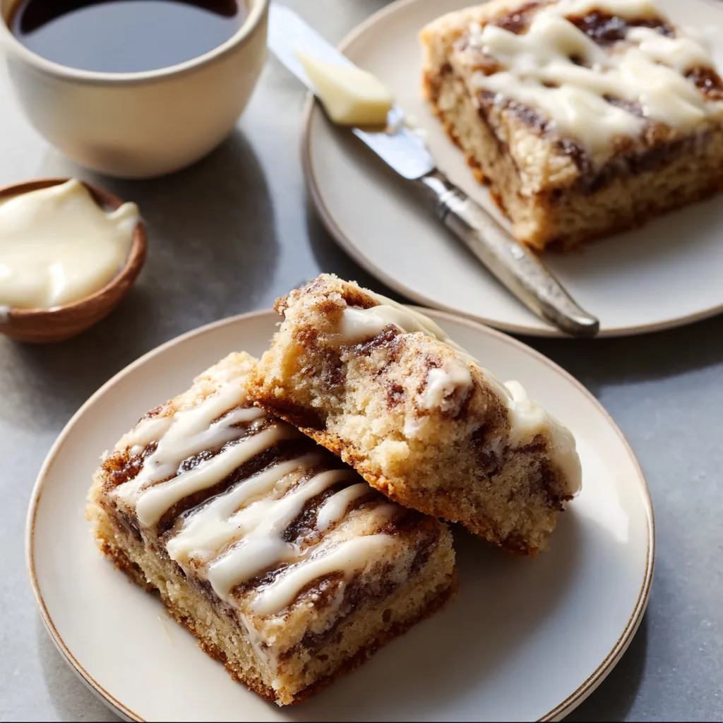 These bars are soft, tender, and packed with cinnamon flavor. They feature a buttery base, a rich cinnamon swirl running through the center, and a smooth cream cheese icing that melts slightly into the warm bars. Every bite tastes like the center of a cinnamon roll — sweet, gooey, and perfectly spiced.