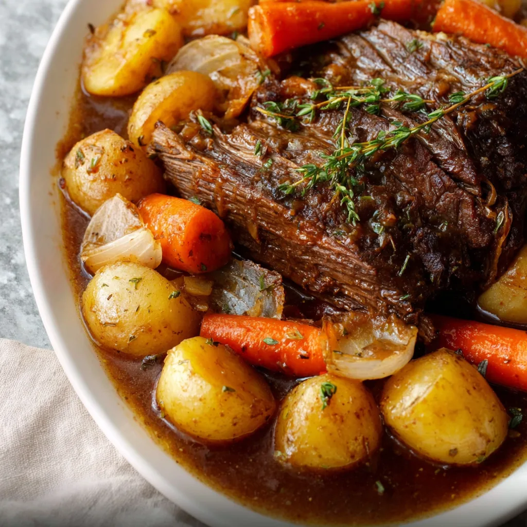 This Classic Pot Roast is the definition of comfort food: rich, hearty, and deeply satisfying. Each bite melts in your mouth, with tender beef and perfectly cooked vegetables bathed in luscious gravy. It’s a recipe that brings warmth to cold evenings and makes any dinner feel special.