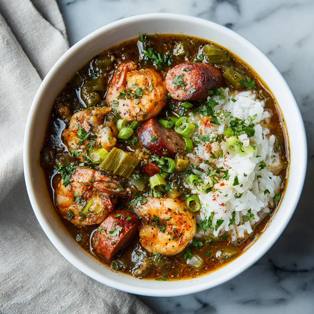 Classic Shrimp & Sausage Gumbo brings together bold Cajun flavors, tender shrimp, smoky sausage, and a deeply developed roux that gives the dish its signature depth. It’s comforting, hearty, and layered with complexity—yet surprisingly achievable in your own kitchen.