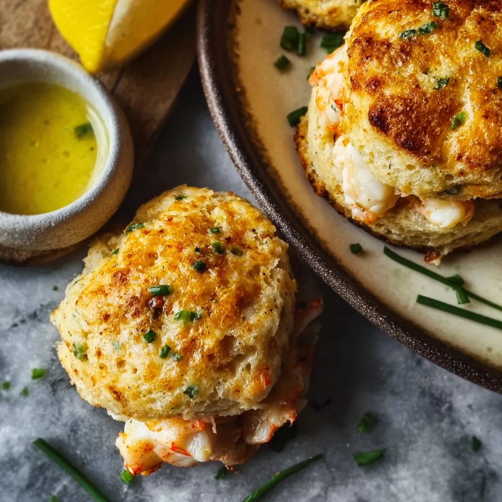 Crab Stuffed Cheddar Bay Biscuits with Lemon Butter