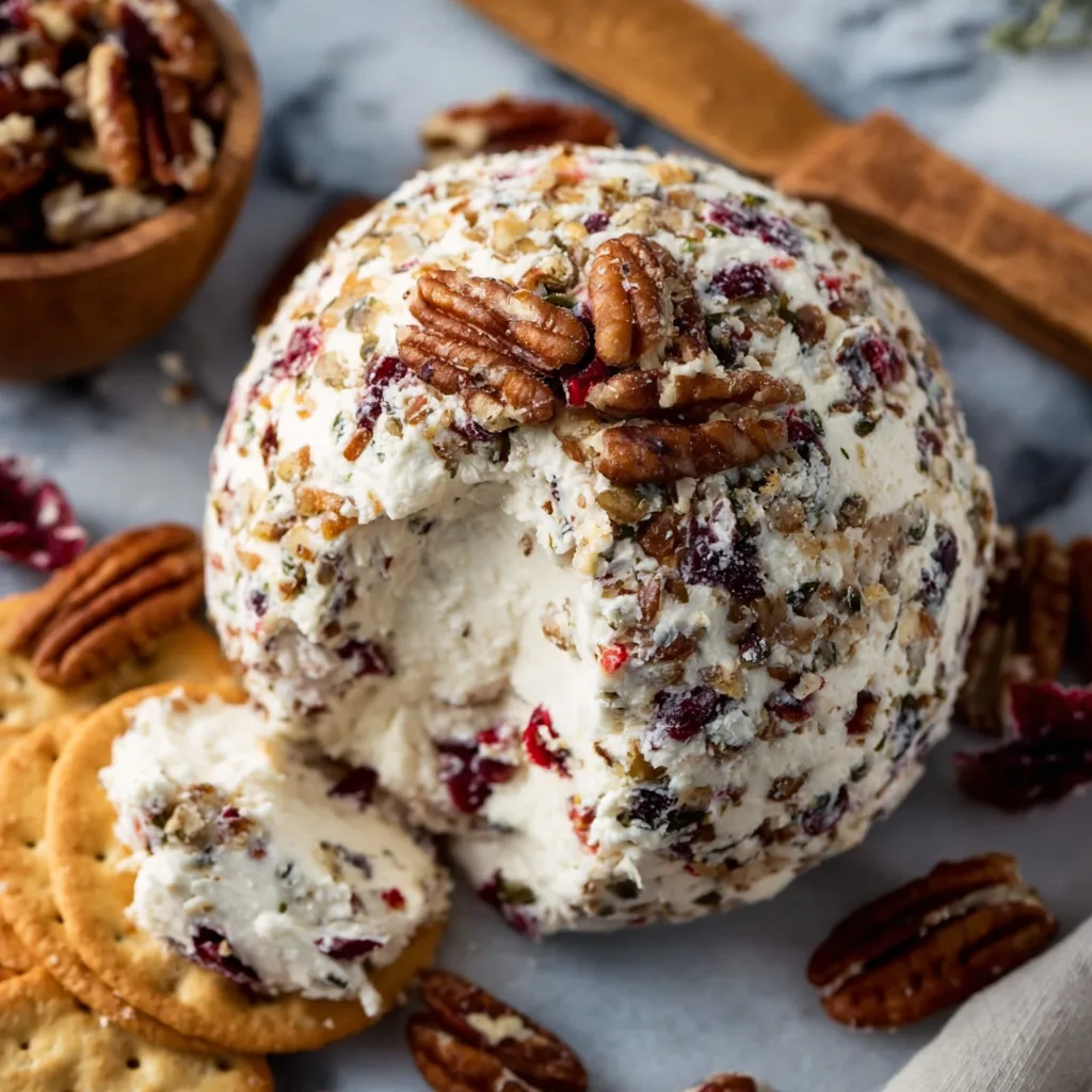 This cheese ball is ideal for making ahead. It can be prepared up to three days in advance and stored tightly wrapped in the refrigerator. Add the cranberry-pecan coating the day of serving for the freshest appearance.