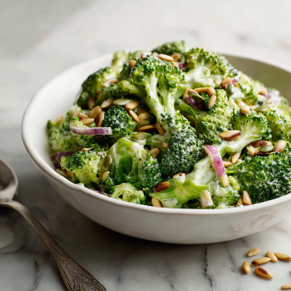 Unlike heavy, mayo-drenched salads, this version balances mayonnaise with Greek yogurt, making it lighter while still luxuriously creamy. The dressing clings to every floret without overwhelming the natural freshness of the broccoli.
