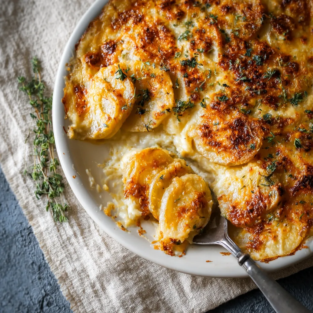 For holidays or dinner parties, this dish can be assembled 1–2 days in advance. Layer the potatoes, cream, and cheese, cover tightly with foil, and refrigerate. When ready to bake, remove from the fridge 30 minutes before placing in the oven.