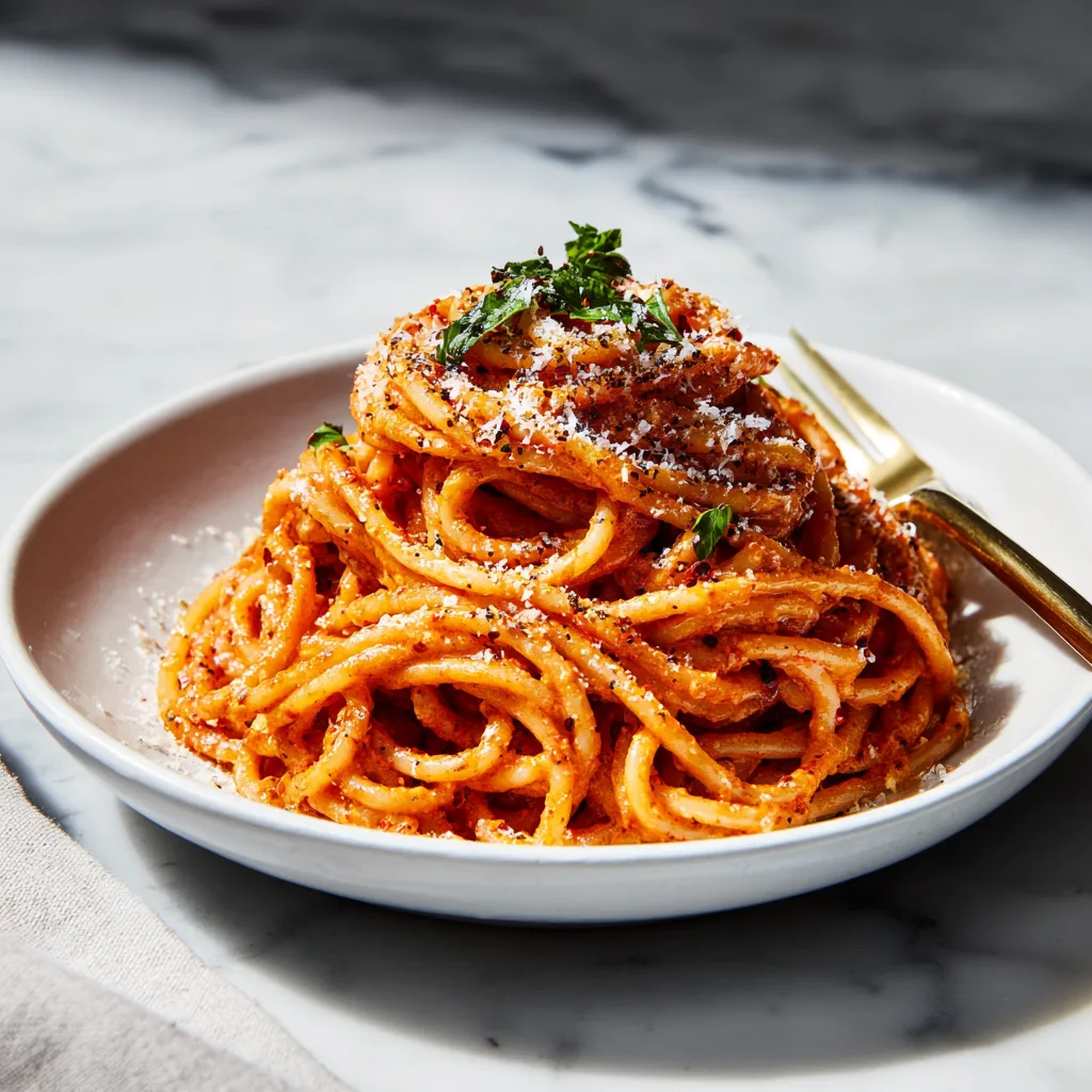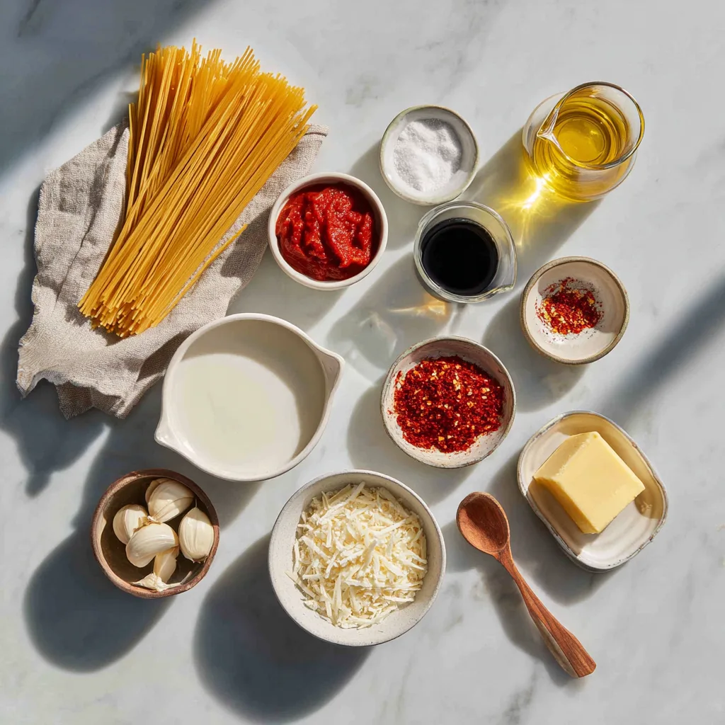 The original viral pasta recipe featured tomato paste, cream, butter, and a splash of vodka to enhance flavor. In this version, we skip the vodka and instead use: