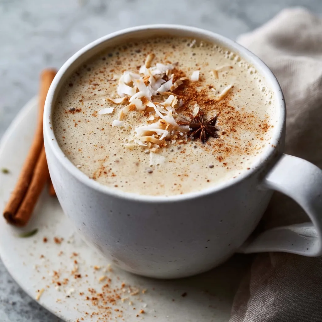 - Garnish: Sprinkle with ground cinnamon or toasted coconut flakes for added aroma and visual appeal. Serve immediately.