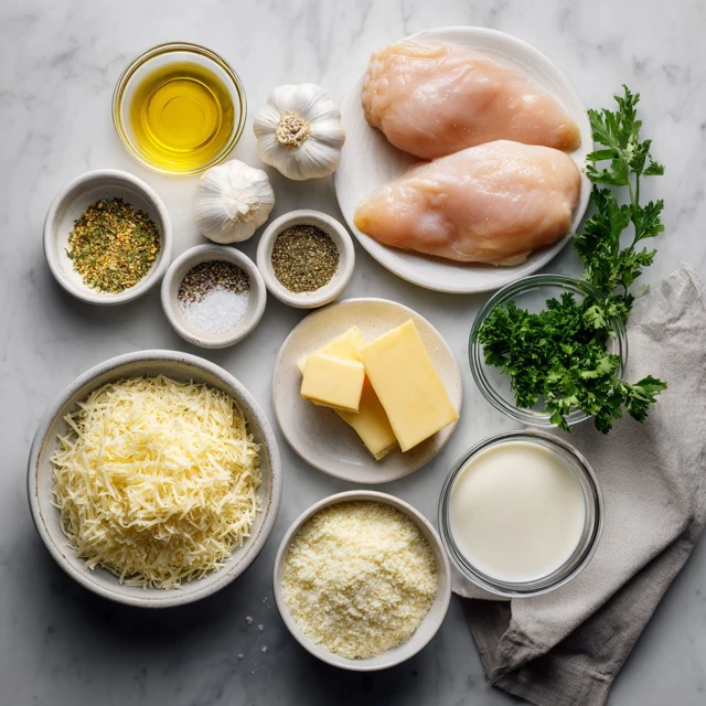 The combination of butter and olive oil prevents burning while enhancing flavor. Chicken broth deglazes the pan and adds depth. Cream thickens naturally as it reduces. Parmesan binds everything together into a smooth, savory sauce.
