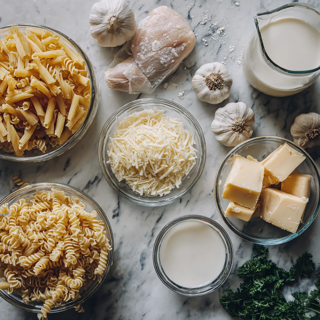 Creamy Garlic Parmesan Chicken with Cheesy Twisted Pasta