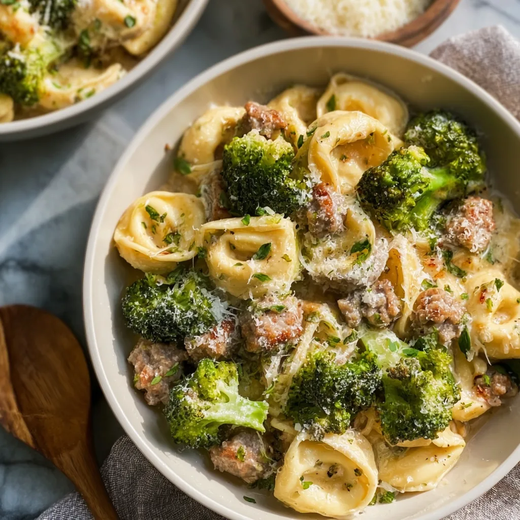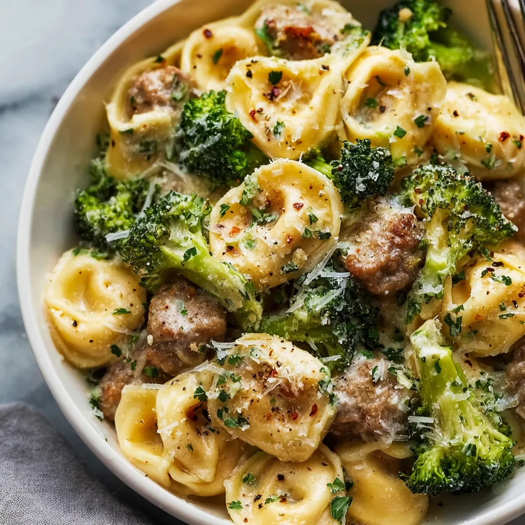 Creamy Garlic Parmesan Tortellini with Sausage and Broccoli