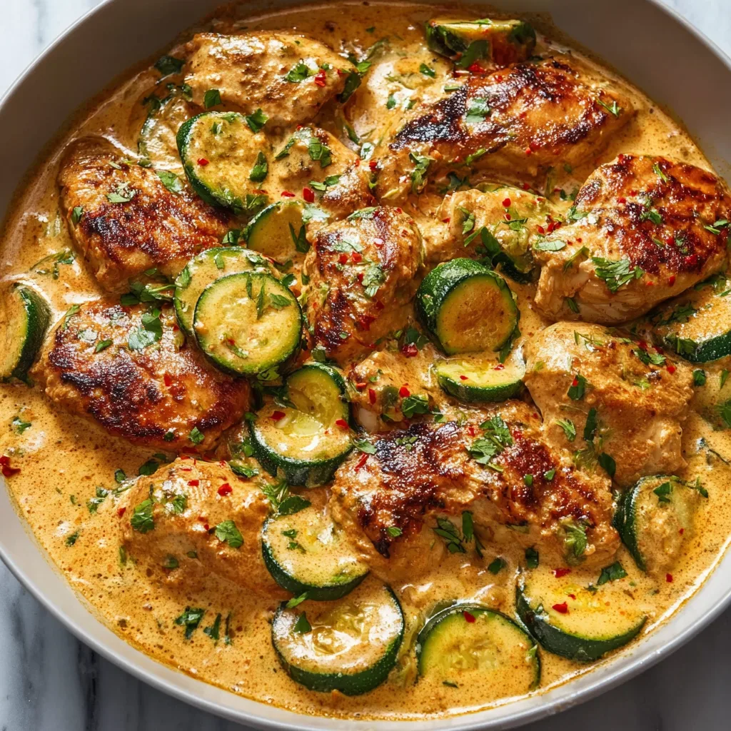 Don’t overcook the zucchini – it should retain slight firmness to provide textural contrast against the tender chicken and smooth sauce. Adding zucchini during the final minutes of cooking preserves its fresh flavor and prevents it from becoming mushy or waterlogged.