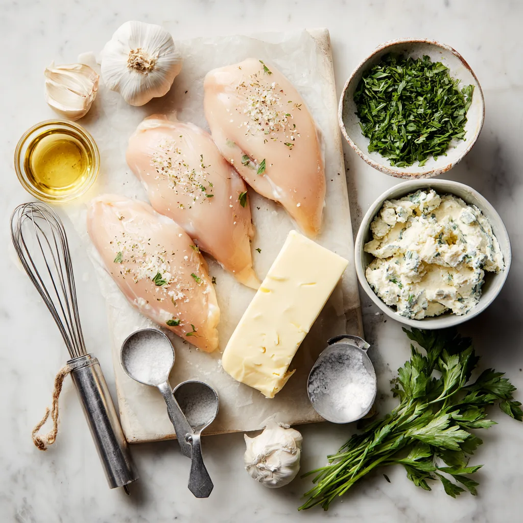 - Season chicken with salt and pepper. Sear in butter and oil for 4–5 minutes per side until golden. Remove from pan.