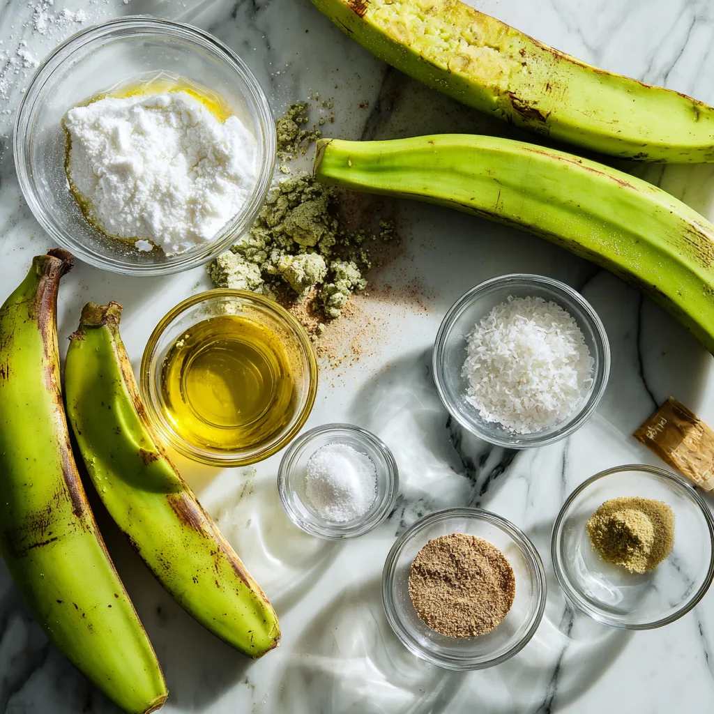 - Peel the green plantains and slice them into 1-inch thick rounds, ensuring consistent thickness for uniform cooking.