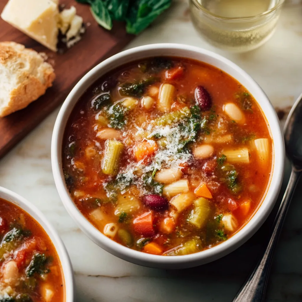 Minestrone is a traditional Italian soup that dates back centuries. It was originally a peasant dish — a clever way to use up leftover vegetables, beans, and pasta. Each region of Italy has its own version, but all share the same foundation: a tomato-based broth loaded with seasonal vegetables and herbs.