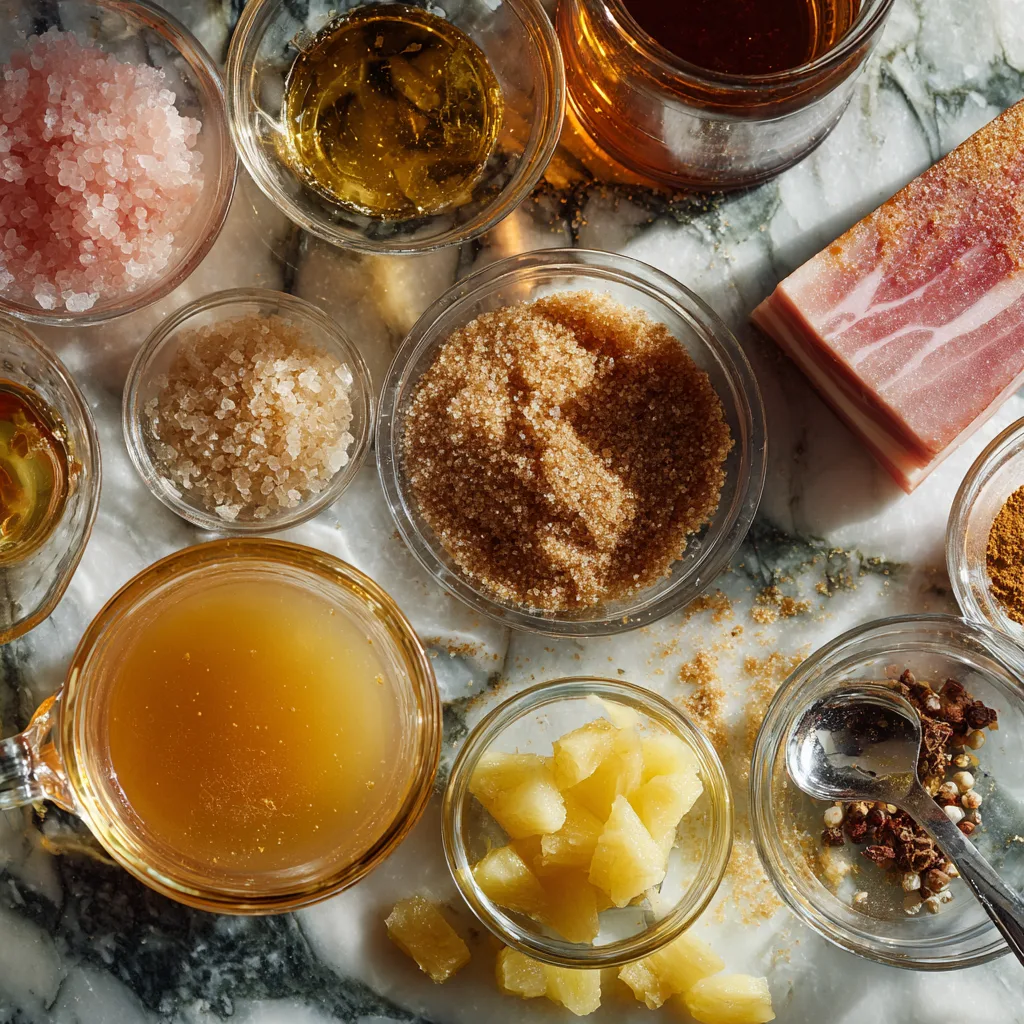 - In a medium bowl, whisk together brown sugar, pineapple juice, honey, Dijon mustard, soy sauce, cinnamon, cloves, and black pepper until smooth and well combined.
