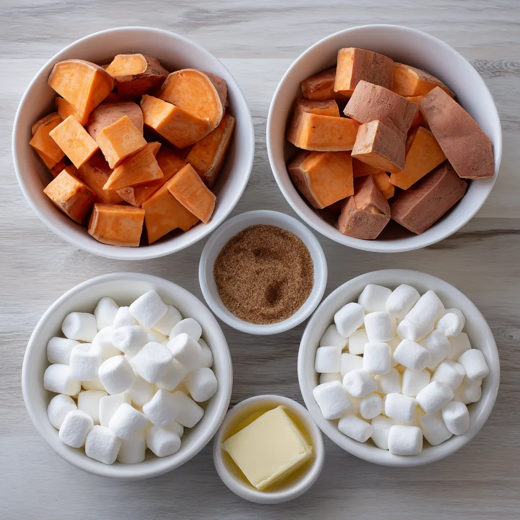 Ingredients for Crockpot Sweet Potatoes with Marshmallows