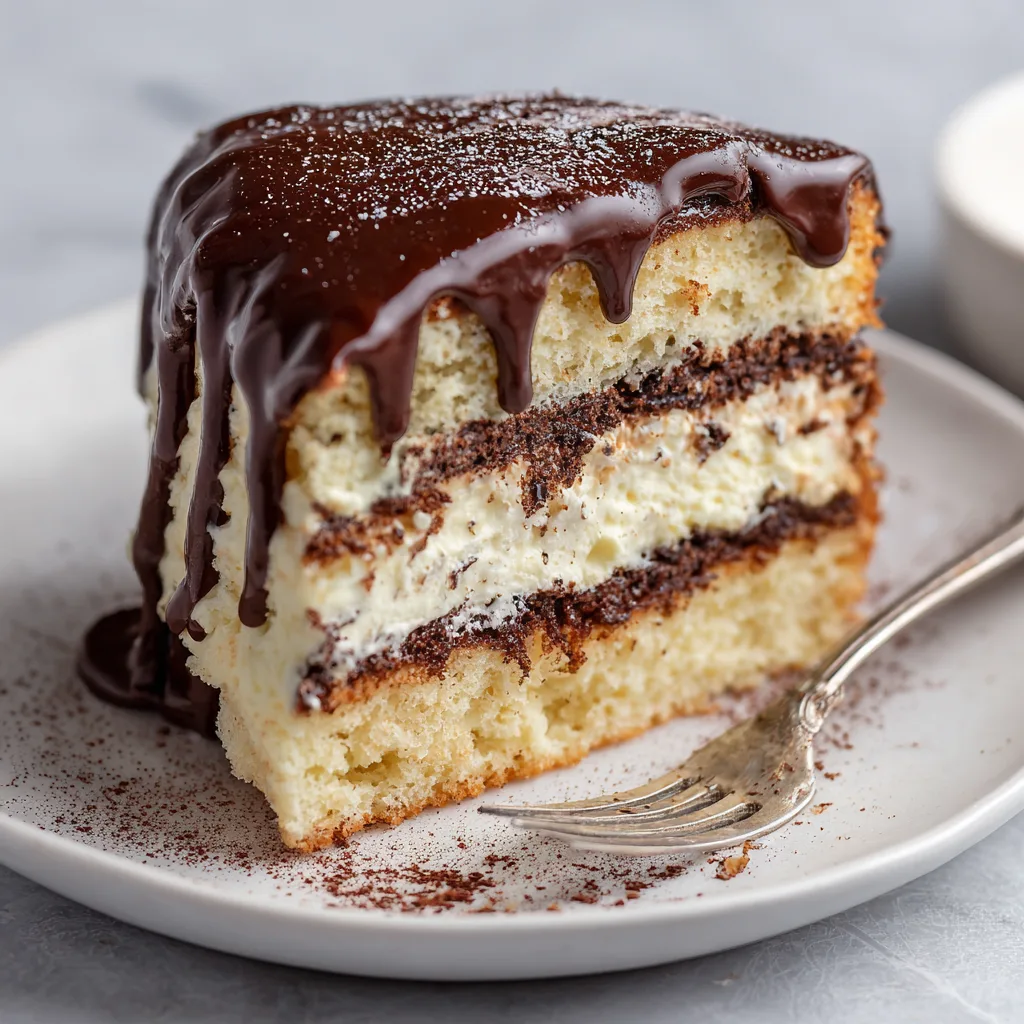 This cake is everything you remember—only better. Imagine soft, moist chocolate cake layers sandwiching a fluffy vanilla cream filling, all wrapped in a silky, glossy chocolate ganache. It’s rich without being overwhelming, sweet but perfectly balanced, and impressive enough for special occasions while still being simple enough to make at home.
