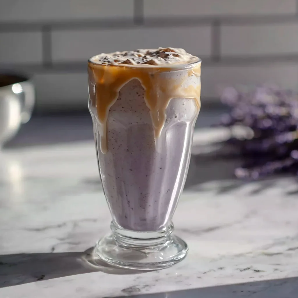 Presentation plays a crucial role in elevating your Earl Grey Lavender Milkshake from a simple treat to an Instagram-worthy indulgence. Start with chilled glasses – placing them in the freezer for 10 minutes before serving helps maintain the milkshake’s thick consistency longer. Tall, clear glasses showcase the beautiful purple-tinged color of your creation while providing ample space for generous toppings.