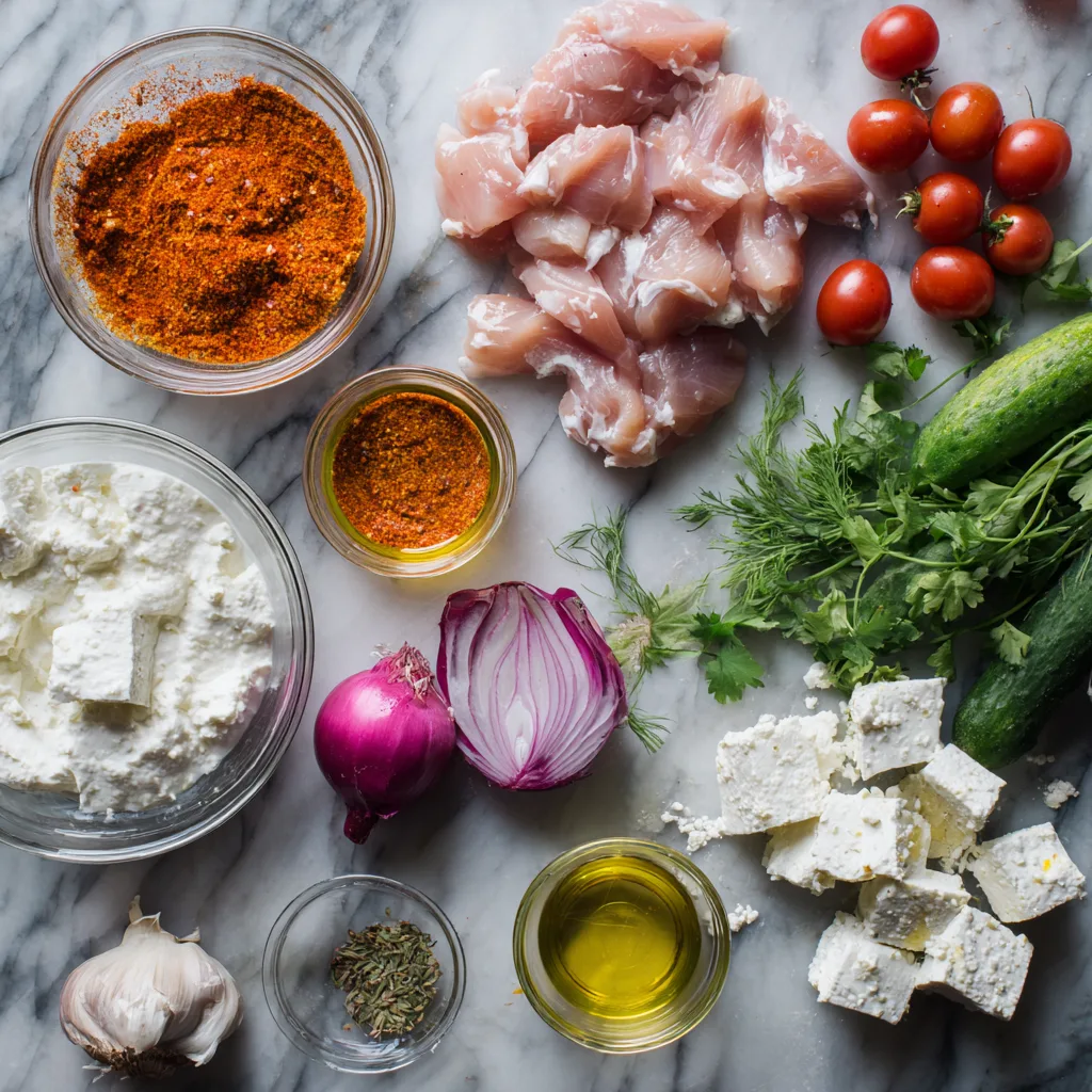 The yogurt sauce also stores well and can be made ahead, though you may need to stir it before serving as it can separate slightly during storage. Prepare your feta cheese and have it portioned into small containers for easy assembly. When you’re ready to eat, simply reheat the chicken (or enjoy it cold—it’s delicious either way), and assemble your bowl with fresh vegetables and toppings.