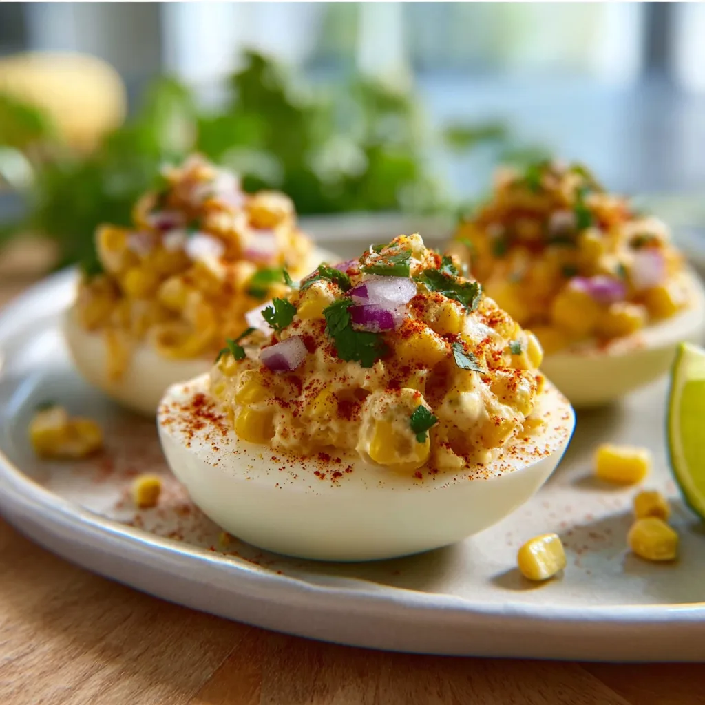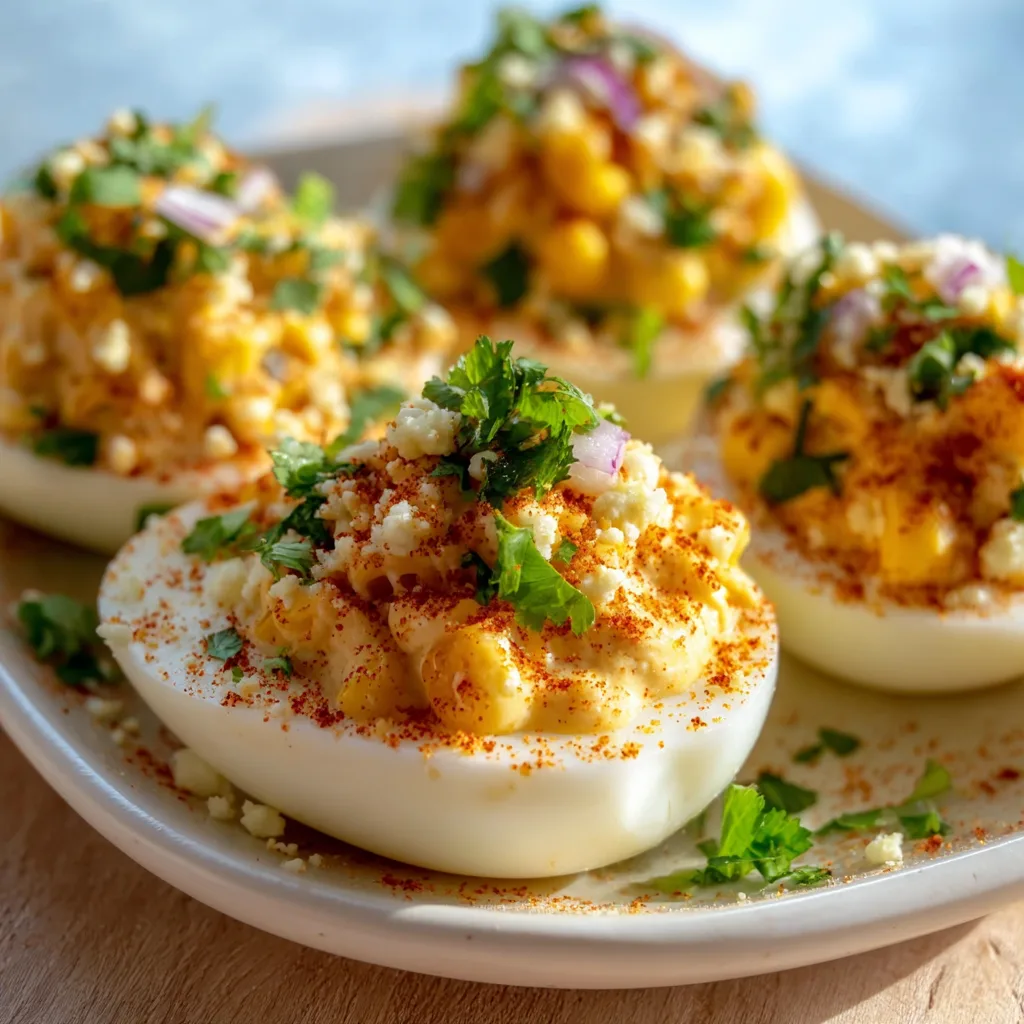 Inspired by the iconic flavors of Mexican street corn, these deviled eggs combine creamy yolk filling with sweet charred corn, tangy lime, smoky chipotle mayo, and a sprinkle of cotija cheese. The result? A vibrant, zesty, slightly spicy appetizer that tastes like summer, celebrations, and comfort all in one bite.