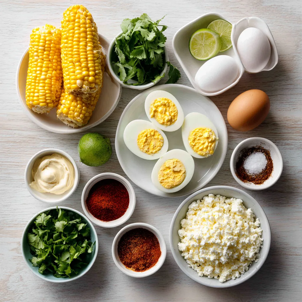 Ingredients for Elote Deviled Eggs with Chipotle Mayo
