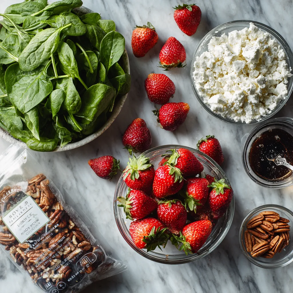 Nutritionally, this salad is a powerhouse of vitamins, minerals, and antioxidants. Strawberries are loaded with vitamin C, folate, and potent antioxidants that support immune function and heart health. Spinach provides iron, vitamin K, and folate, while also being an excellent source of lutein and zeaxanthin, which support eye health. Pecans contribute healthy monounsaturated fats, protein, and fiber, making this salad as nutritious as it is delicious.