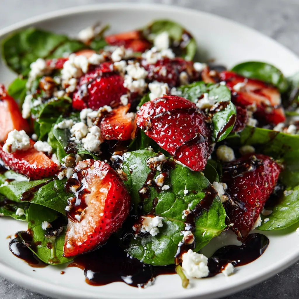 The beauty of this salad lies not just in its vibrant colors and contrasting textures, but in how each ingredient complements the others to create a symphony of flavors. The natural sweetness of ripe strawberries pairs beautifully with the earthy undertones of fresh baby spinach, while the salty, creamy feta cheese adds richness and depth. Toasted pecans provide a satisfying crunch that contrasts wonderfully with the tender greens, and the homemade balsamic glaze ties everything together with its sweet-tangy finish.