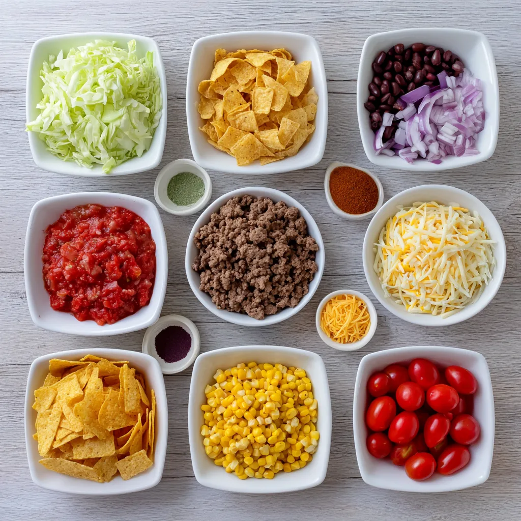 - 1–1½ cups Fritos corn chips, crushed lightly