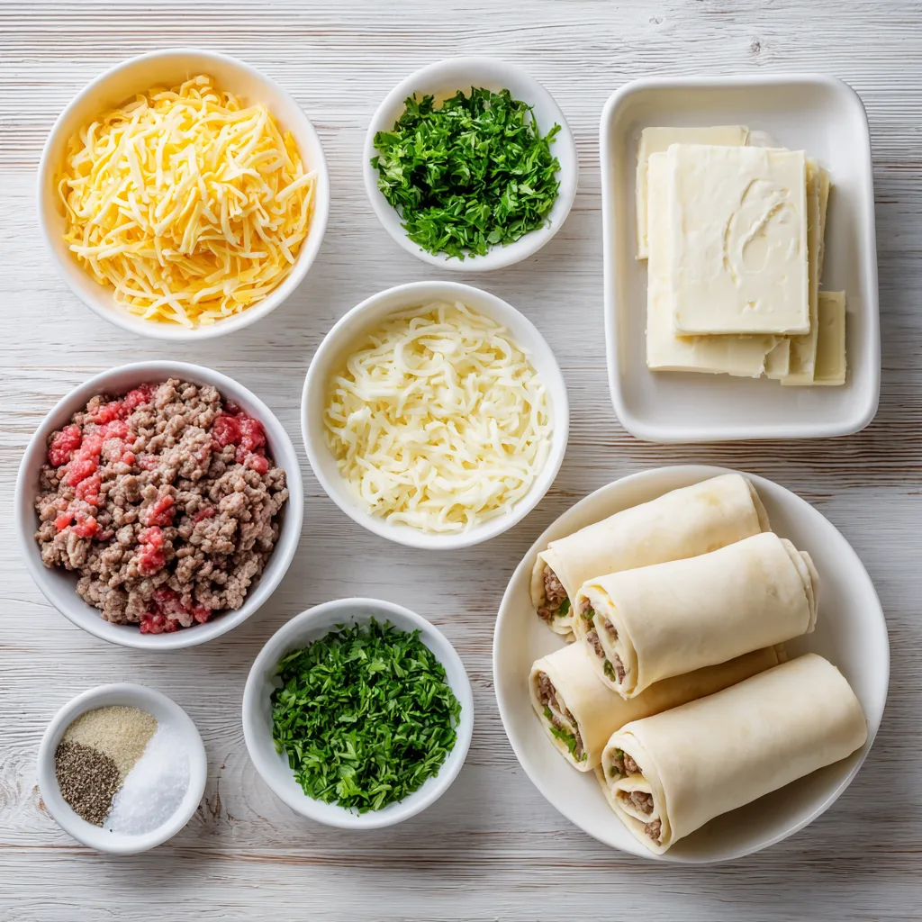 Ingredients for Garlic Butter Beef Cheeseburger Rollups