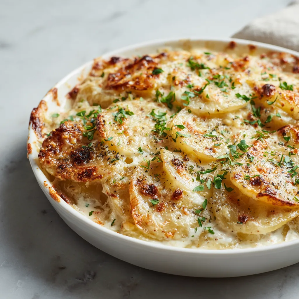 Garlic Scalloped Potatoes with Greek Yogurt