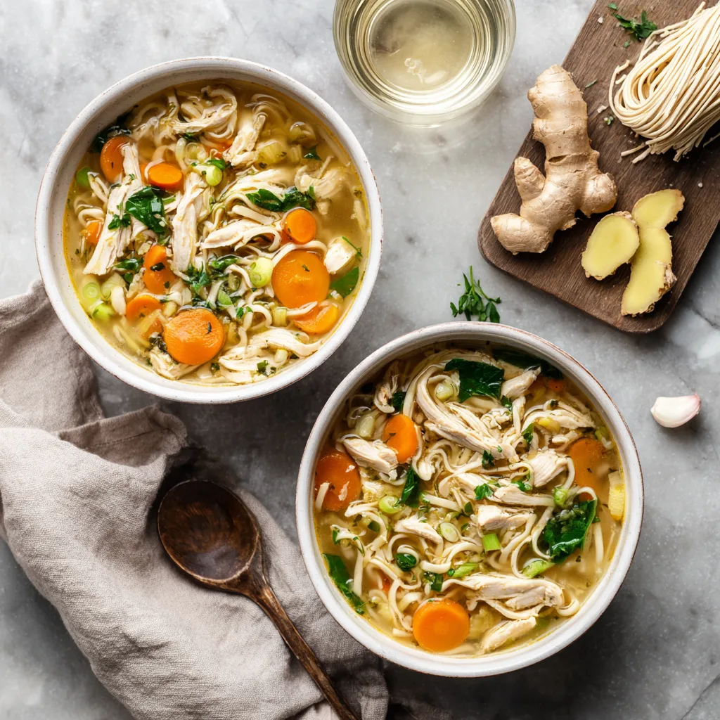 There’s something timeless about chicken noodle soup. It’s nostalgic, soothing, and universally comforting. Adding ginger and garlic gives it new life — deeper aroma, gentle warmth, and layered flavor.