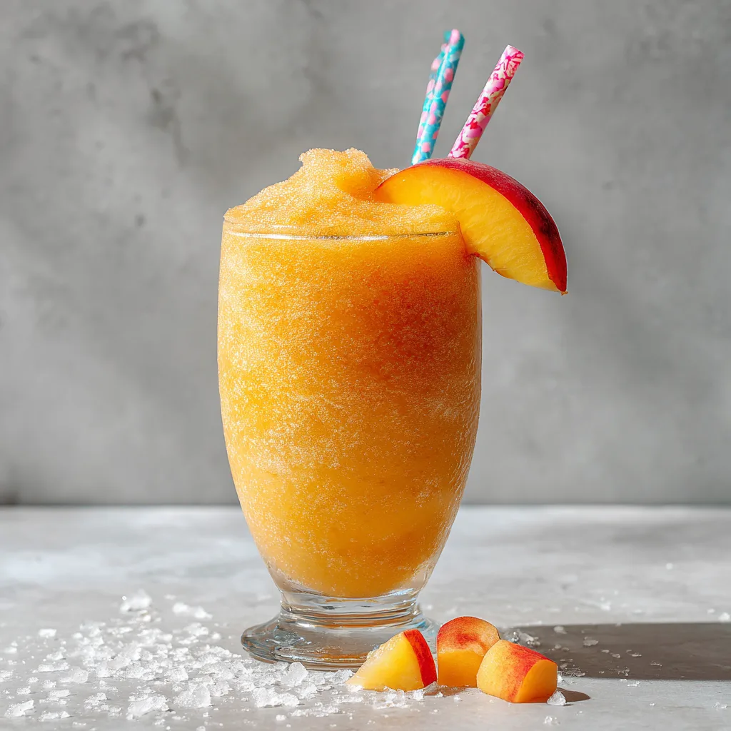 Blend, pour, sip, and enjoy the ultimate frozen peach drink experience.