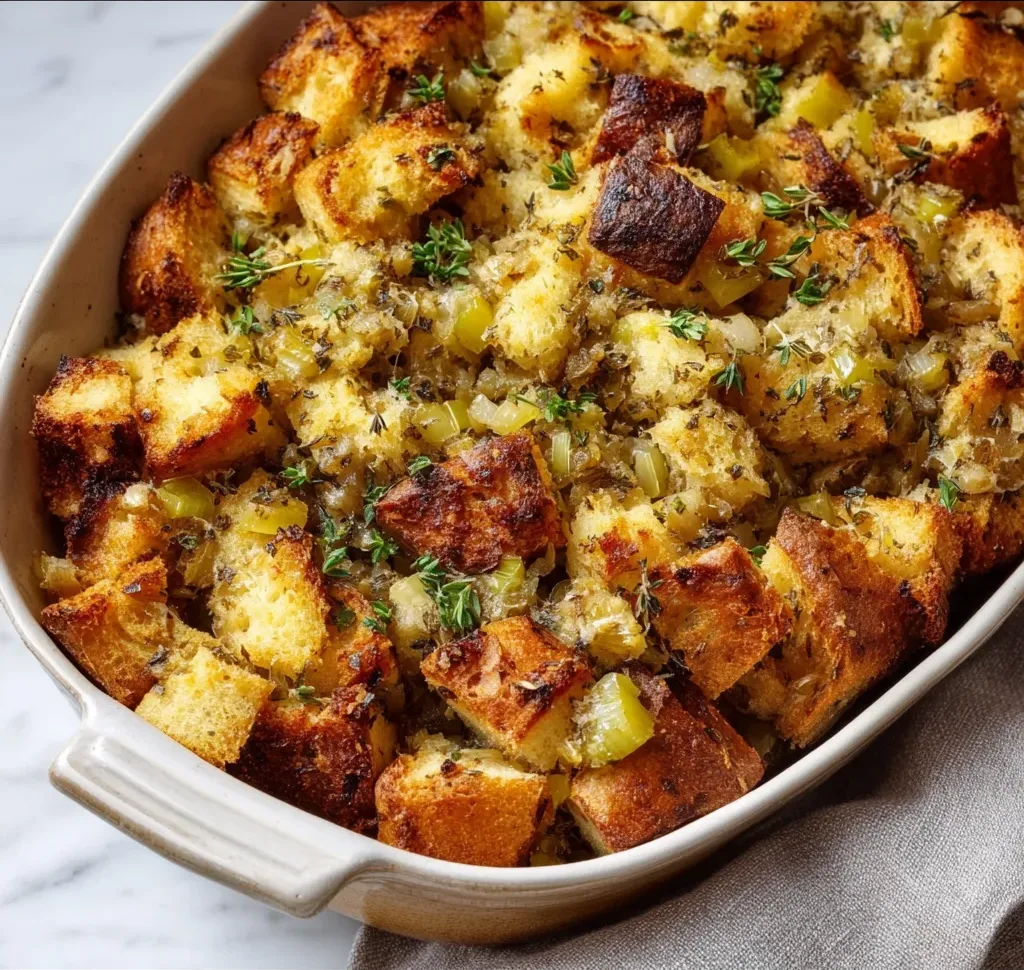 Whether you’re hosting your first Thanksgiving or continuing a long family tradition, this stuffing is a keeper — the kind your guests will ask for every year.