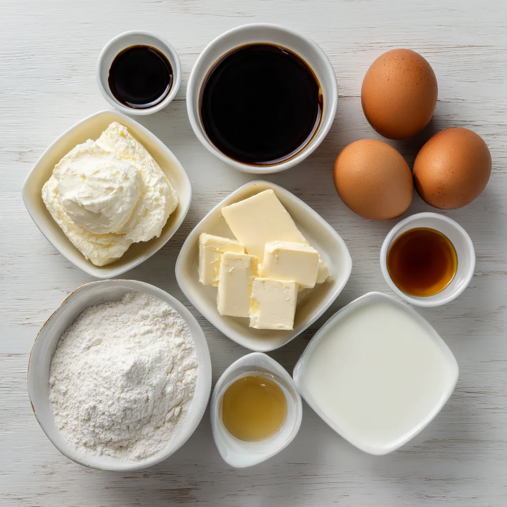 The flavor of this cheesecake is deceptively complex. Cream cheese provides tang and richness, sugar caramelizes into subtle bitterness, and vanilla rounds everything out with warmth. Heavy cream adds luxurious mouthfeel, while a small amount of flour stabilizes the custard without making it dense.