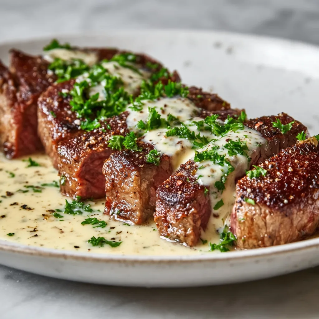 Juicy steak with creamy garlic sauce is the definition of indulgent comfort food done right. A beautifully seared steak, tender and flavorful on the inside, topped with a rich, velvety garlic cream sauce creates a dish that feels straight out of a steakhouse—yet it’s surprisingly easy to make at home.