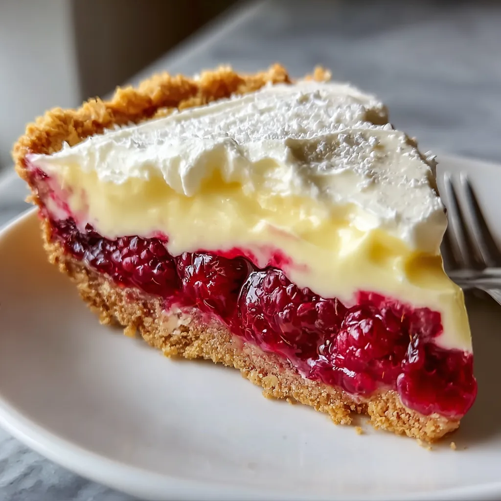 The beauty of this pie comes from its layers: a buttery graham cracker crust, a silky lemon cream layer bursting with citrus flavor, and a fresh raspberry layer that brings juicy color and natural brightness. Chilled until perfectly set, each slice cuts cleanly into gorgeous stripes of summertime flavors.