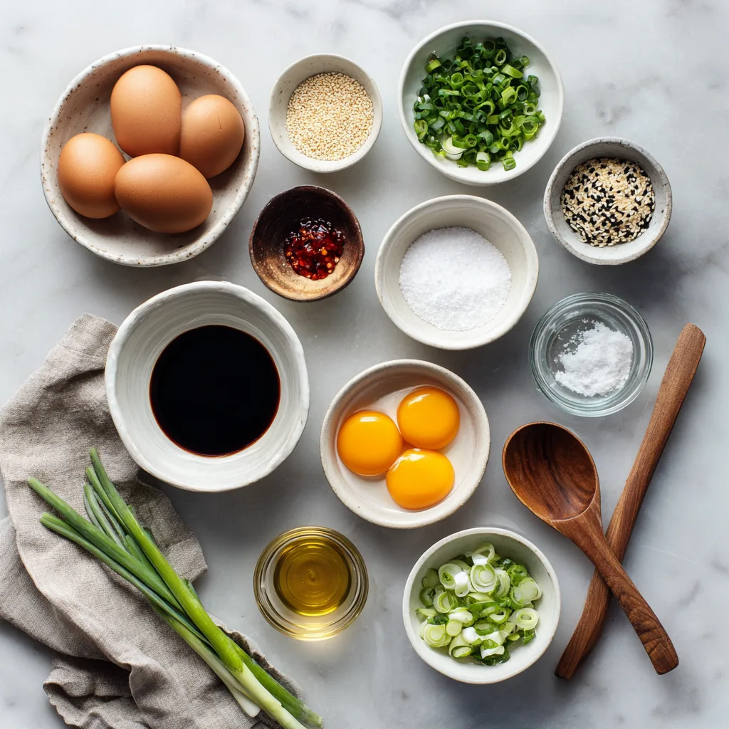 In a bowl, combine soy sauce, water, sugar, sesame oil, garlic, green onions, chili, and sesame seeds. - Marinate the Eggs